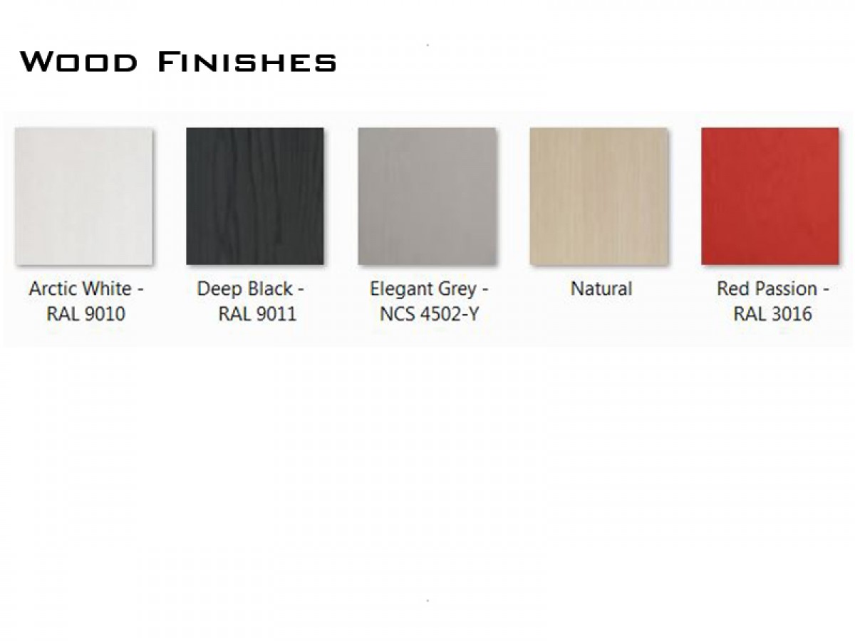 - It is available in ash wood, in the natural versions with lightly brushed finish or open pore lacquer finish in different colours.