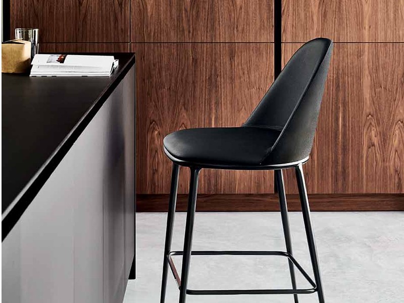 - Lea is a versatile stool with a sturdy four-leg steel base. The seat and backrest of this stool are expertly upholstered in a variety of options, including fabric, leather, or faux leather. What's more, you have the flexibility to choose different fabrics for the front face and back face, allowing for a customized and unique look.