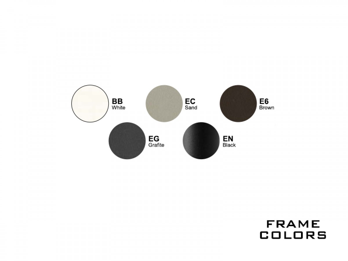 - Frame available in white, sand, grafite, black or brown lacquered steel