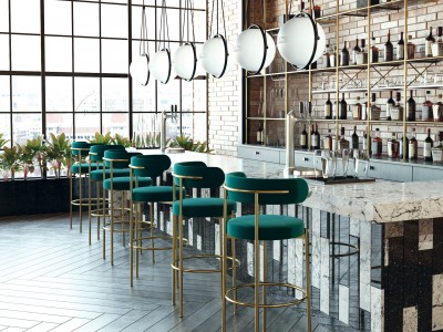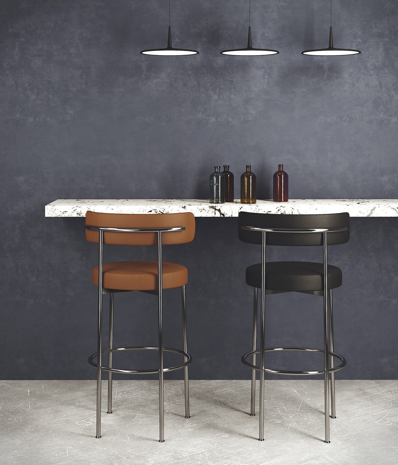 - A very trendy barstool made of different angles and curves that adapt naturally in any modern interior design.
