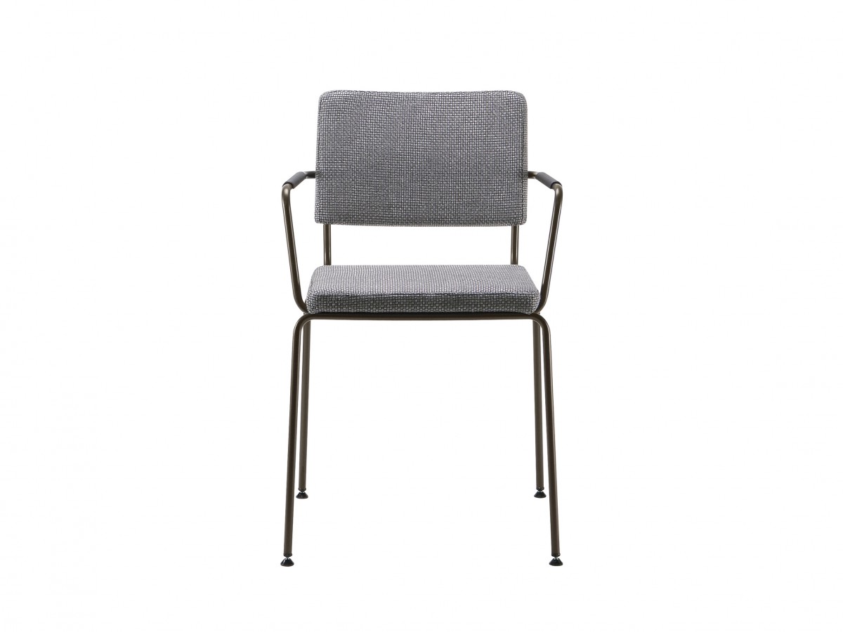- Lacquered metal frame, with the shell either upholstered in fabric, or in leather.