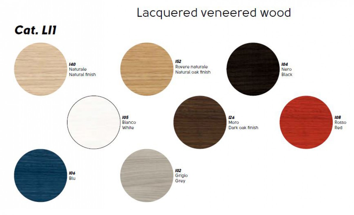 - Frame available in Natural finish, Natural oak finish, Black, White, Dark Oak finish, Red, Blue, Grey, - lacquered veneered wood.