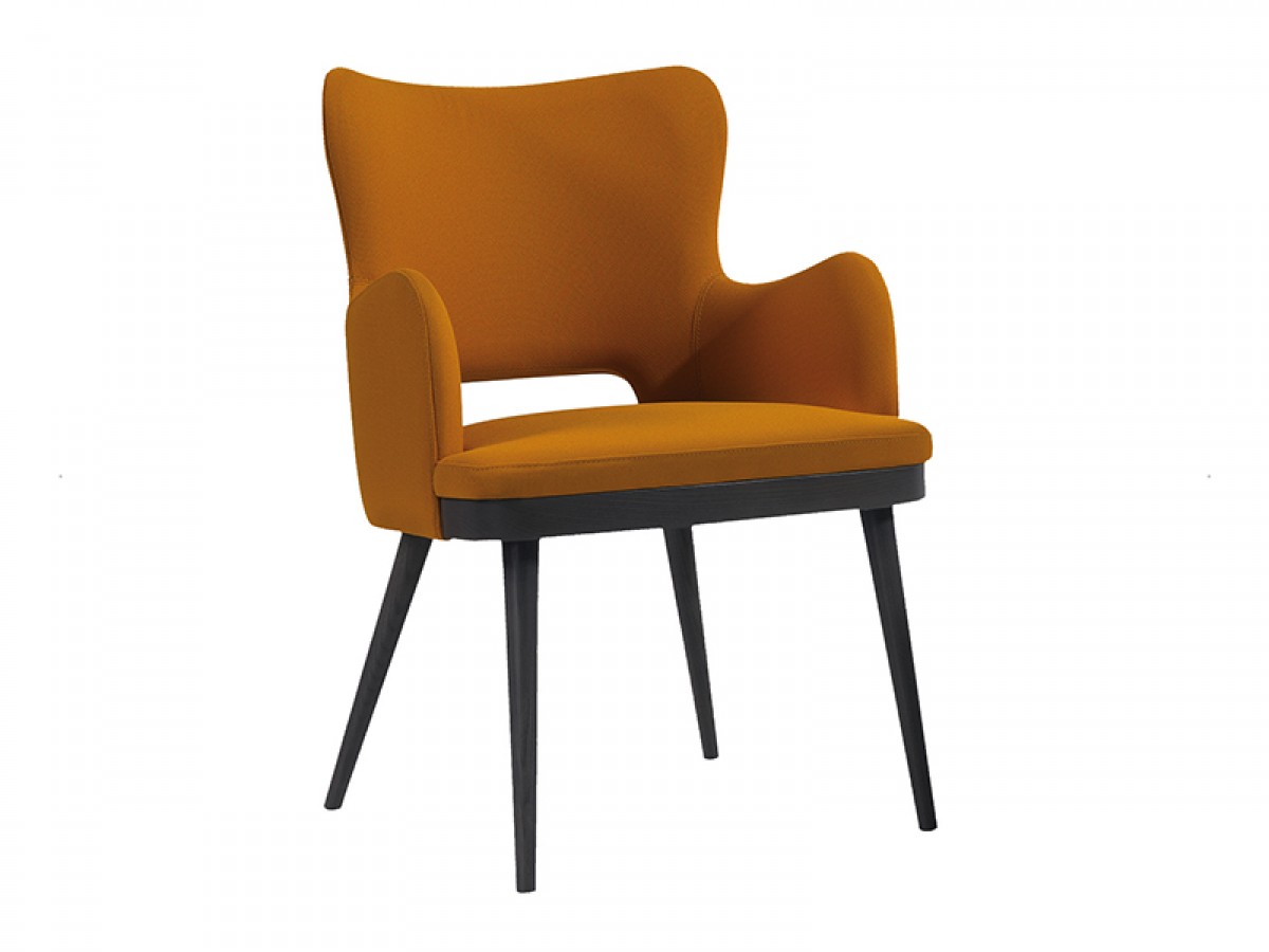 - Armchair, with solid beech wood frame, seat and back in fabric or faux leather.