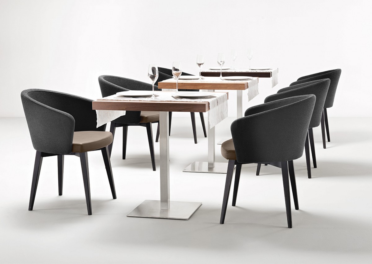 • Upholstered seat and backrest in fabric, eco-leather or customer's own material.