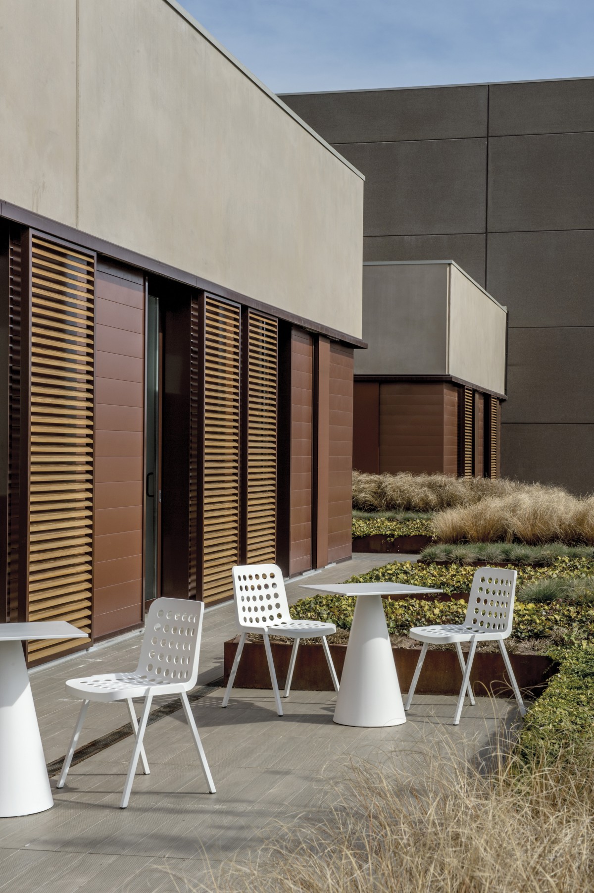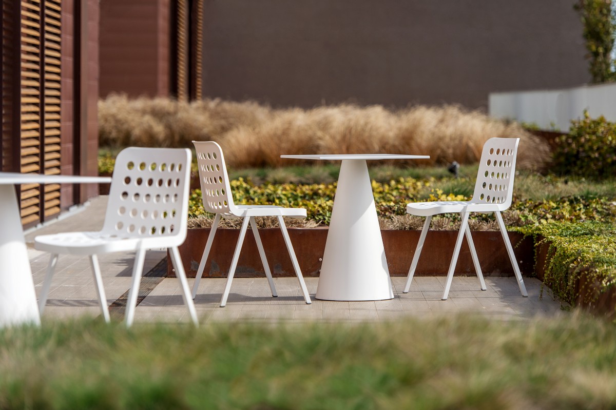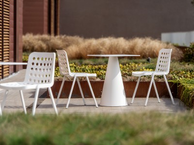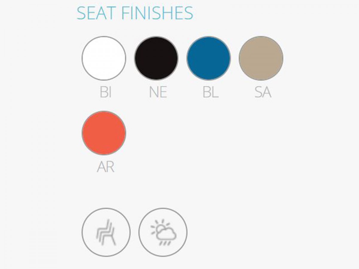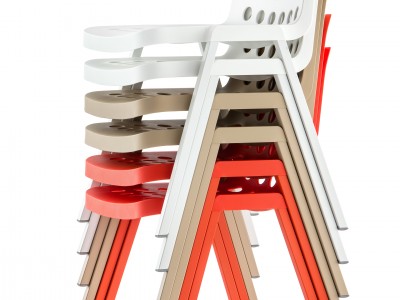- Koi-Booki polypropylene chair, 100% recyclable, injected polypropylene shell, legs of extruded aluminium and frame made of die-casted aluminium.