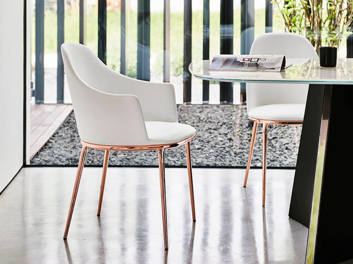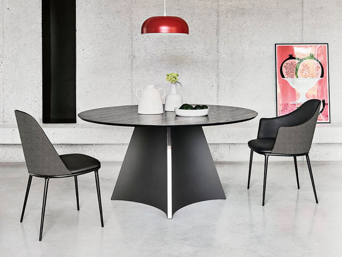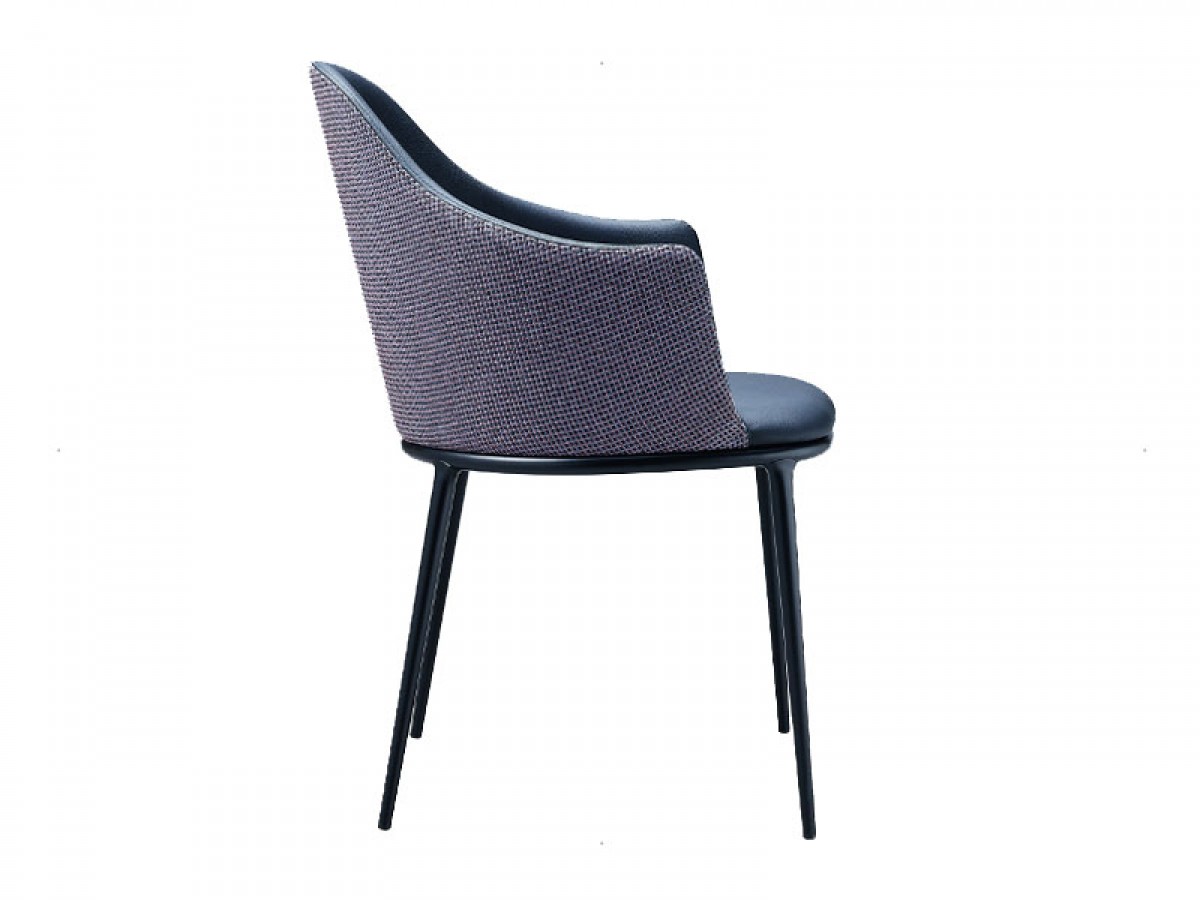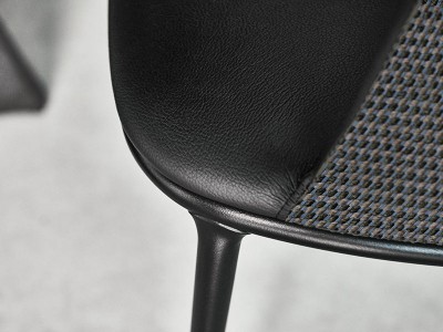 - Seat and backrest upholstered in fabric, leather or faux leather also with different fabrics for front face and back face.
