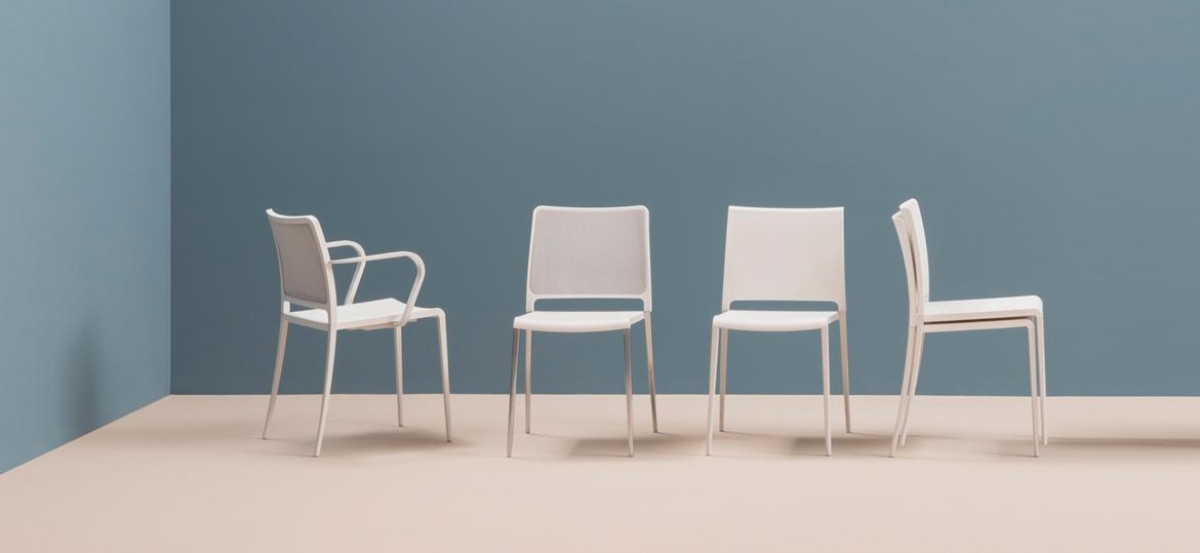 - Mya 701 chair with polypropylene seat and mesh textilene back.
