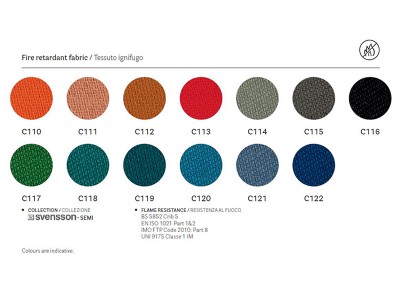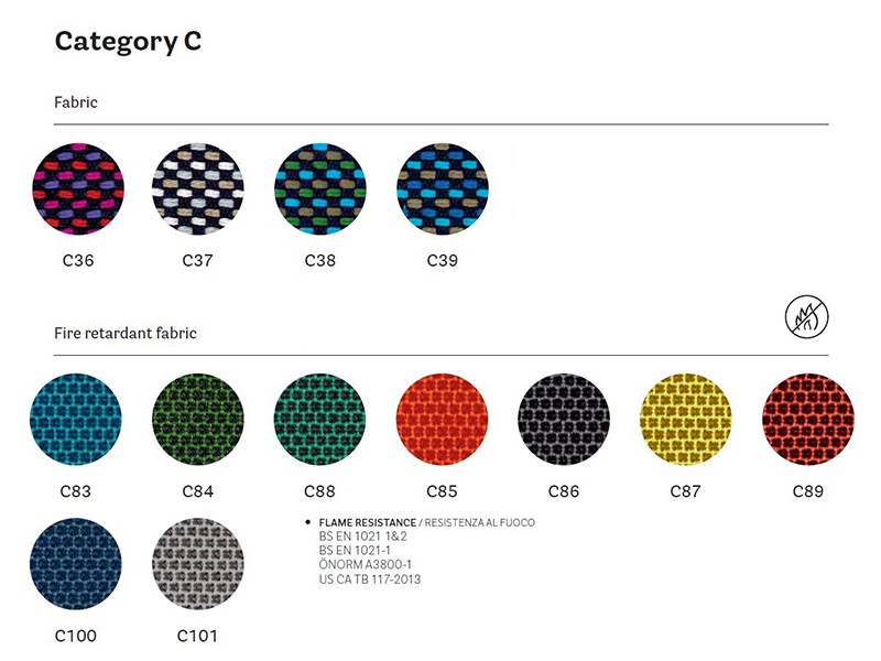 • Upholstery colors: grey, brown, blue, green, orange, red, black.