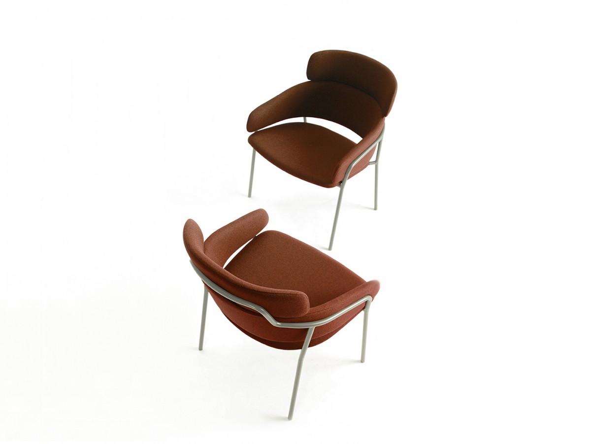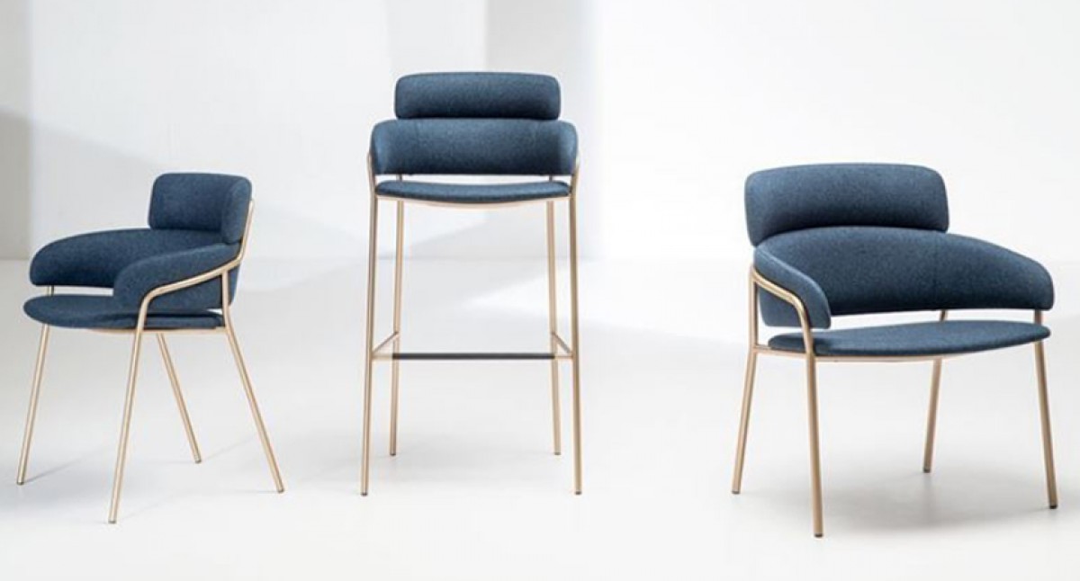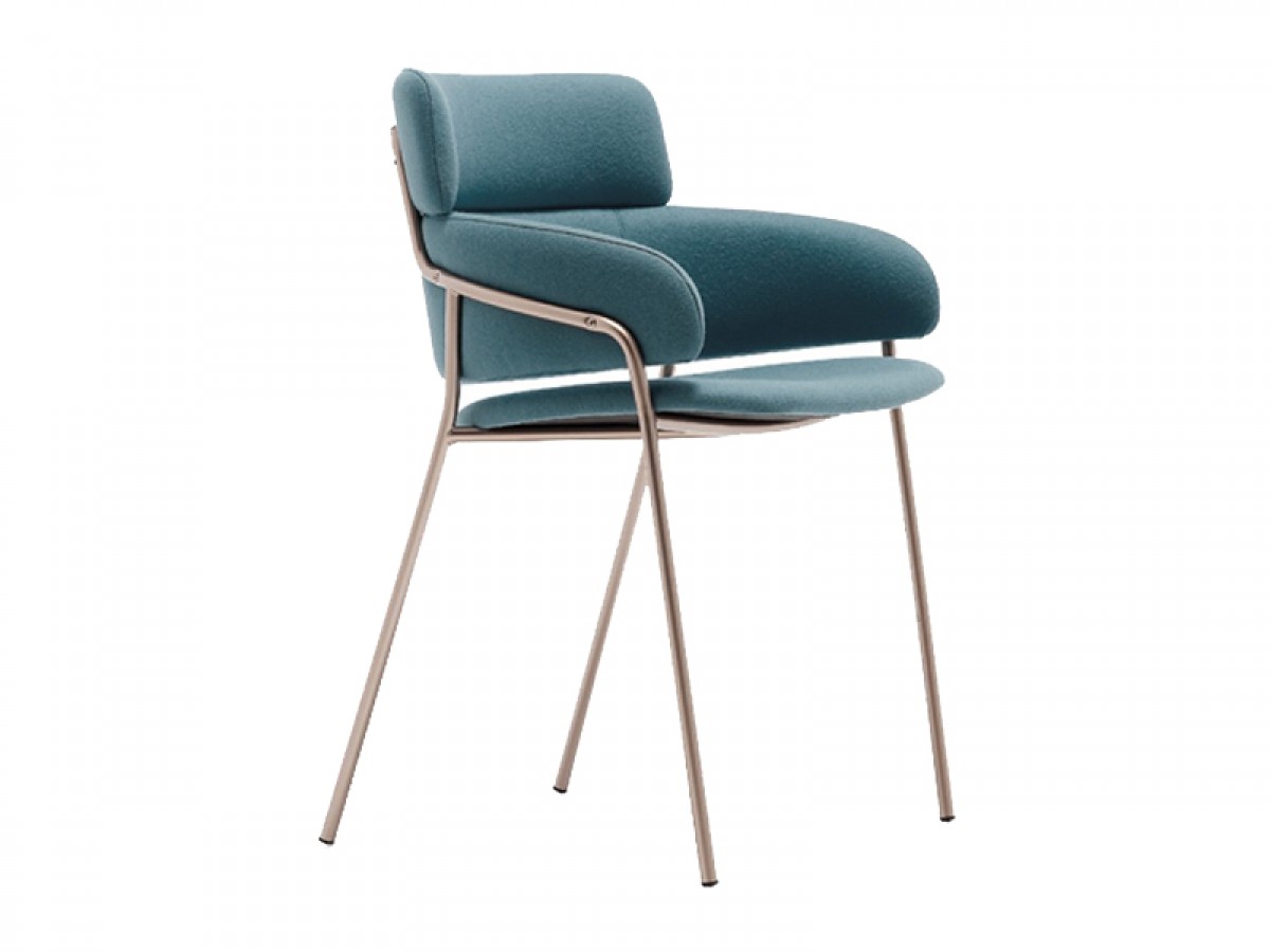 - Chair with chromed /copper finish or painted steel frame, upholstered seat and back