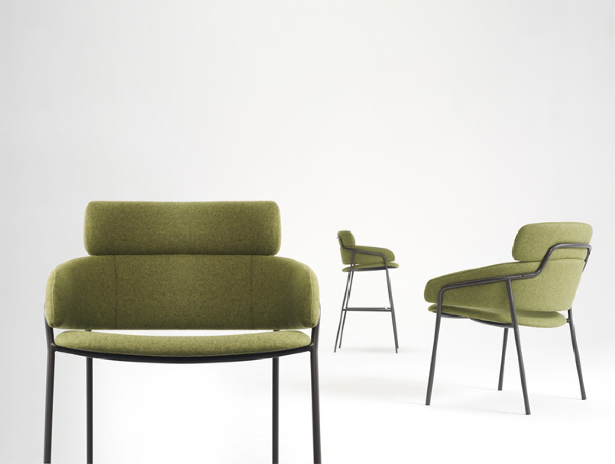 - Upholstered seat and back, a three pieces construction for maximum strength and comfort, is upholstered and can be covered in wool, cotton and faux leather.