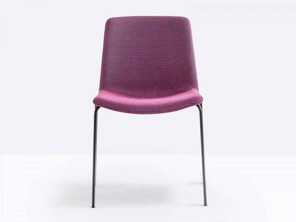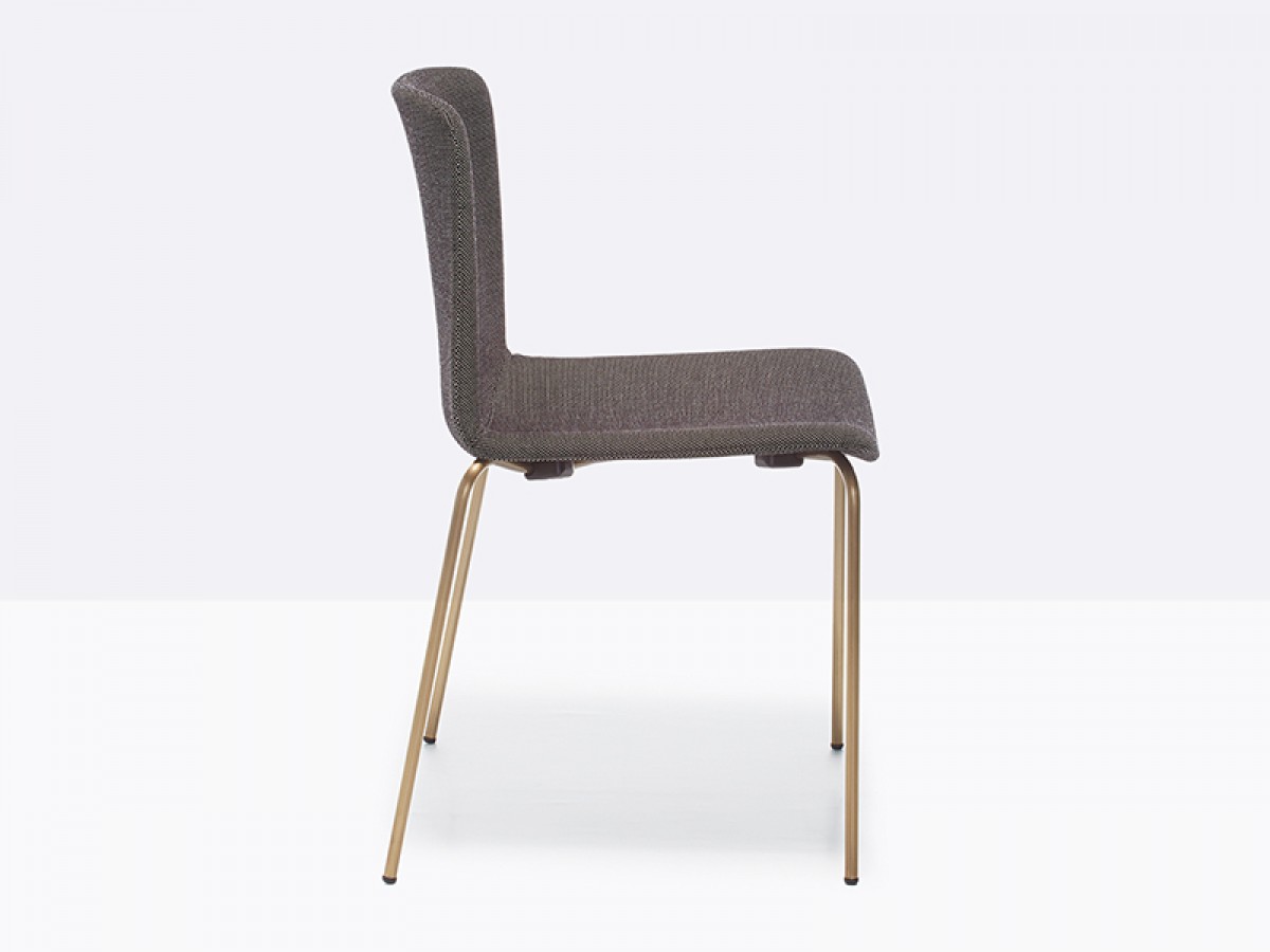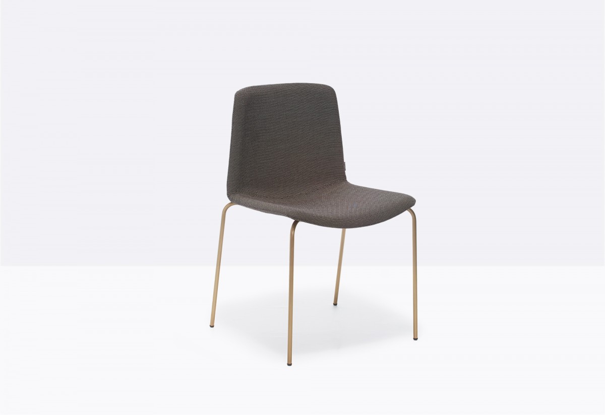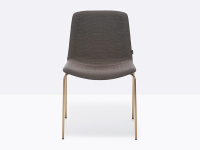 - The Tweet Soft chair matches shell upholstered in fabric or simil leather with steel tube frame Ø14 mm chromed, powder coated or in antique brass finishes.