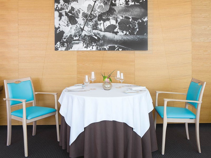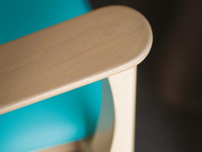 • The sleek contours of the seatback juxtaposed with the crisp angles of the chair legs and armrests achieve a remarkable equilibrium between airiness and robustness, gracefulness and stability.