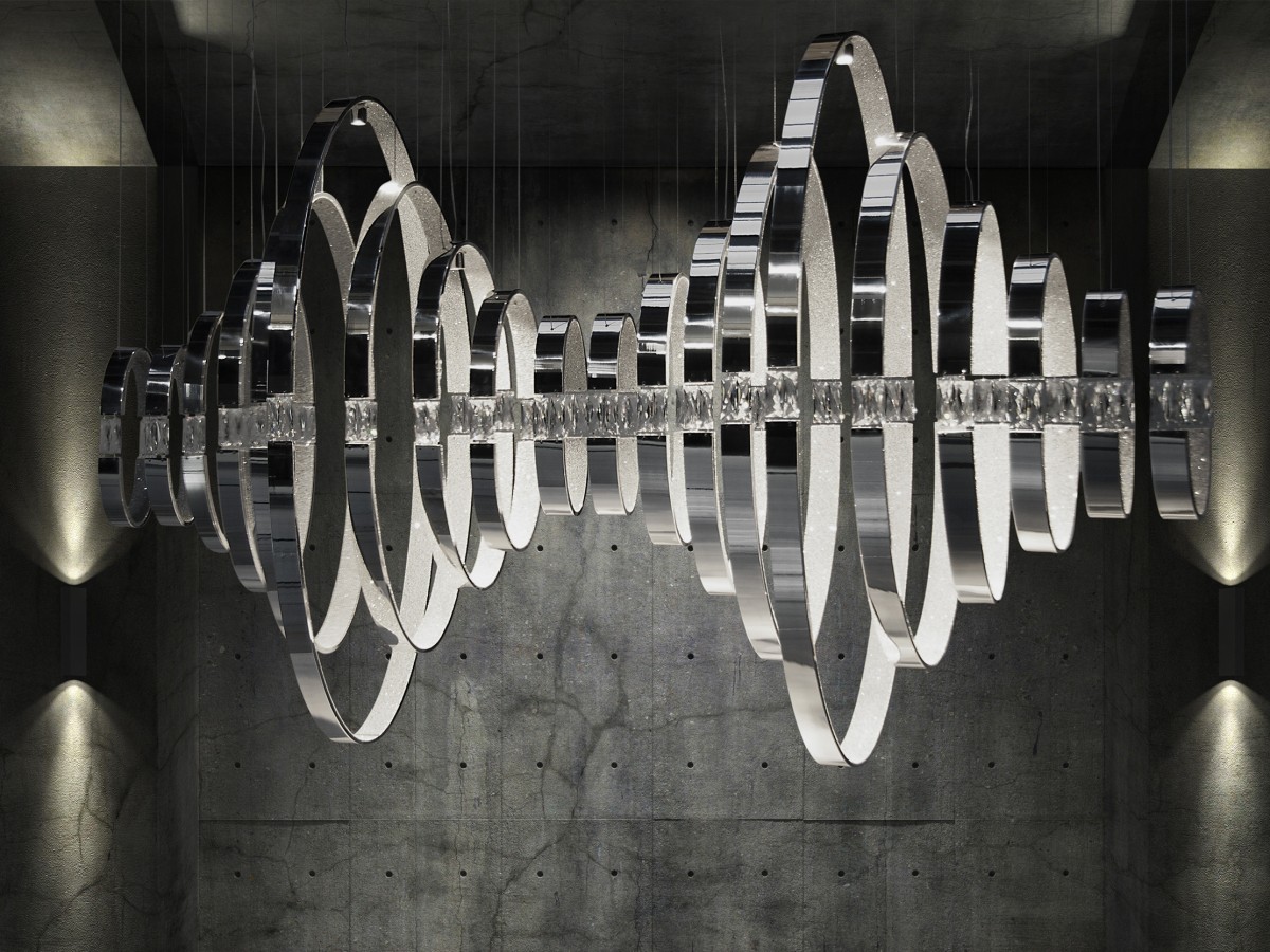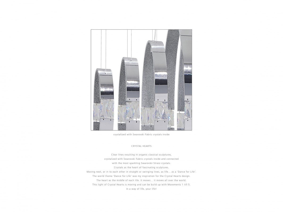 Clear lines resulting in organic classical sculptures, crystalized with Swarovski Fabric crystals inside and connected with the most sparkling Swarovski Strass crystals. Crystals as the heart of fascinating sculptures.