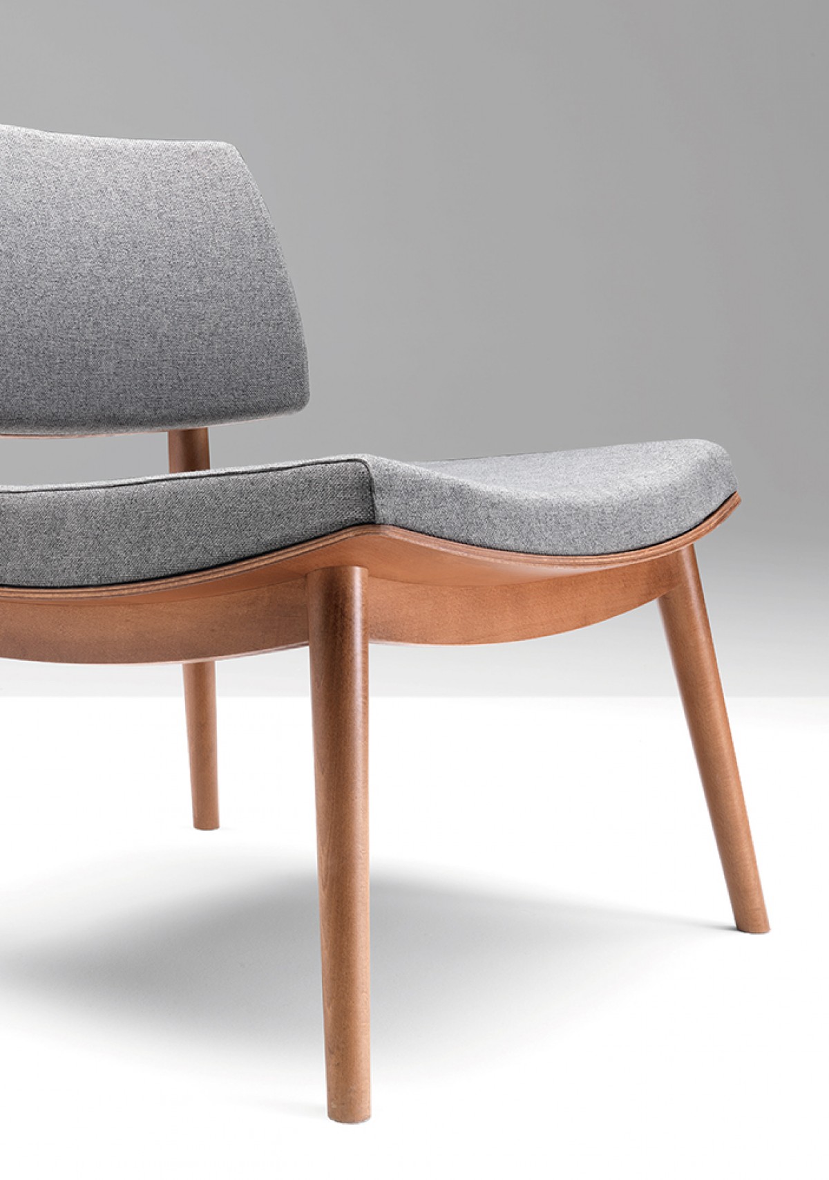 • Upholstered seat and back with fabric, eco-leather or customer's own material.