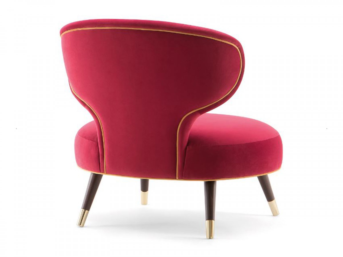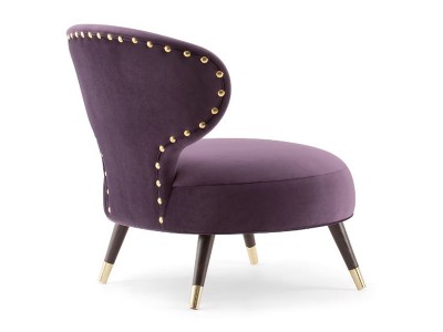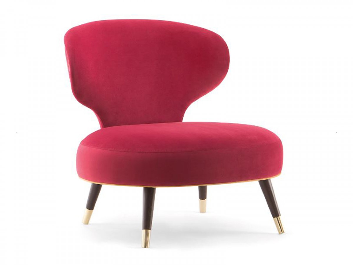 - The lounge chair has a soft seat and a low backrest.