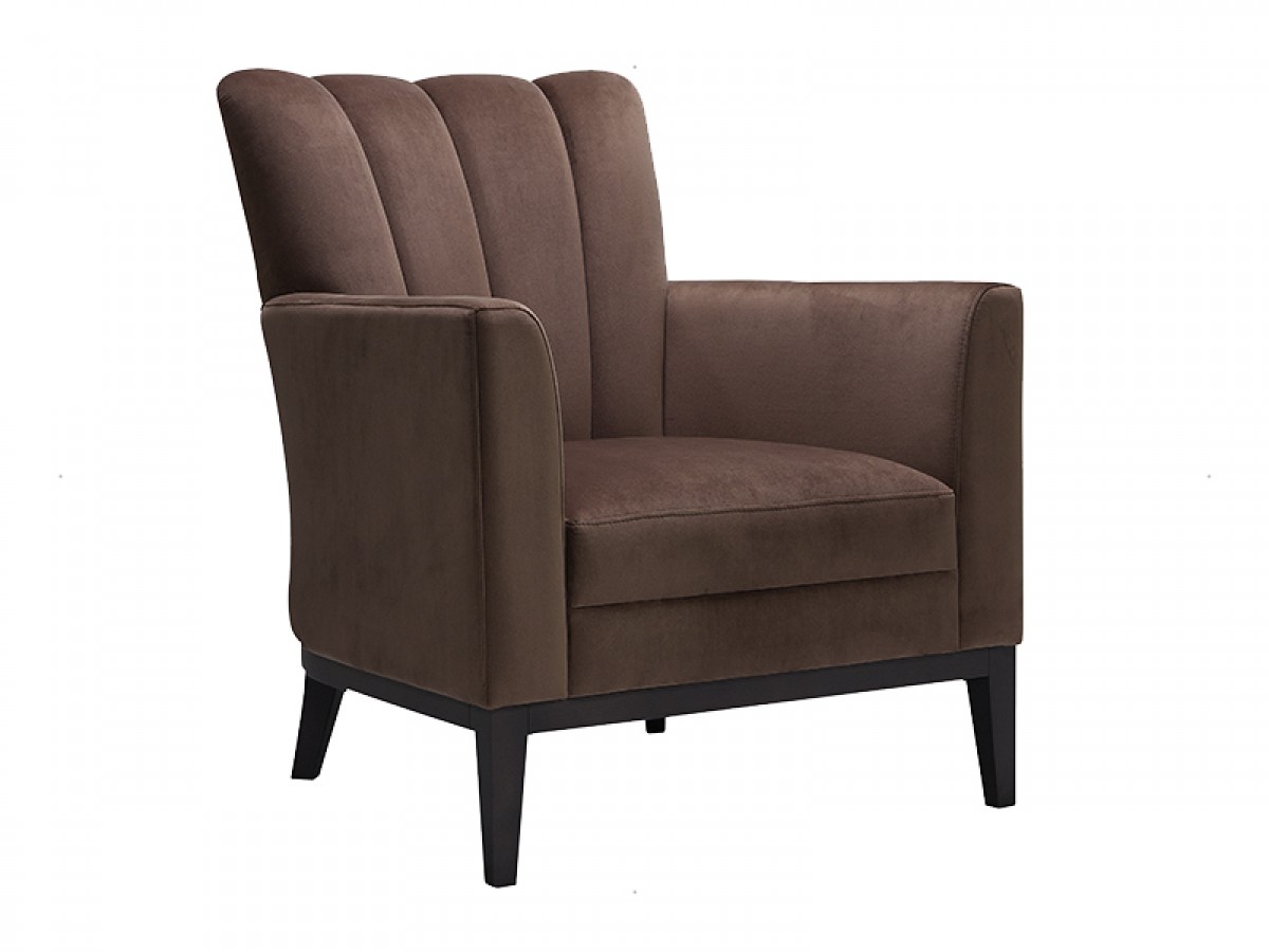 • Lounge chair with solid beech wood frame, seat and back in fabric or faux leather.