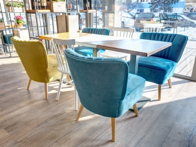 - Beech wood frame and legs coated with polyurethane lacquer for long resistance to intense wear.