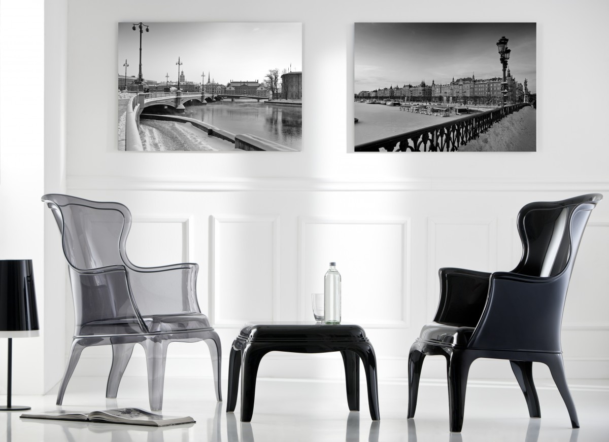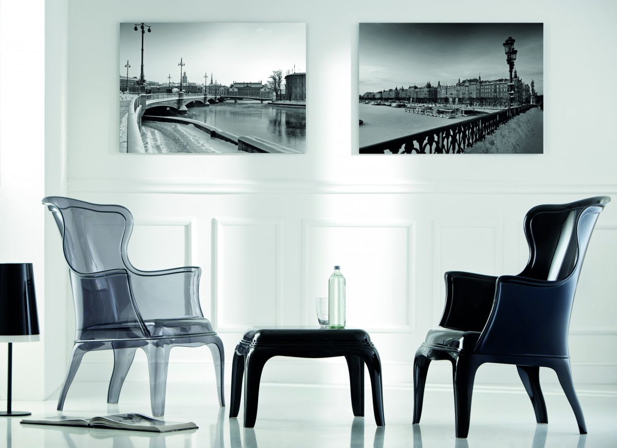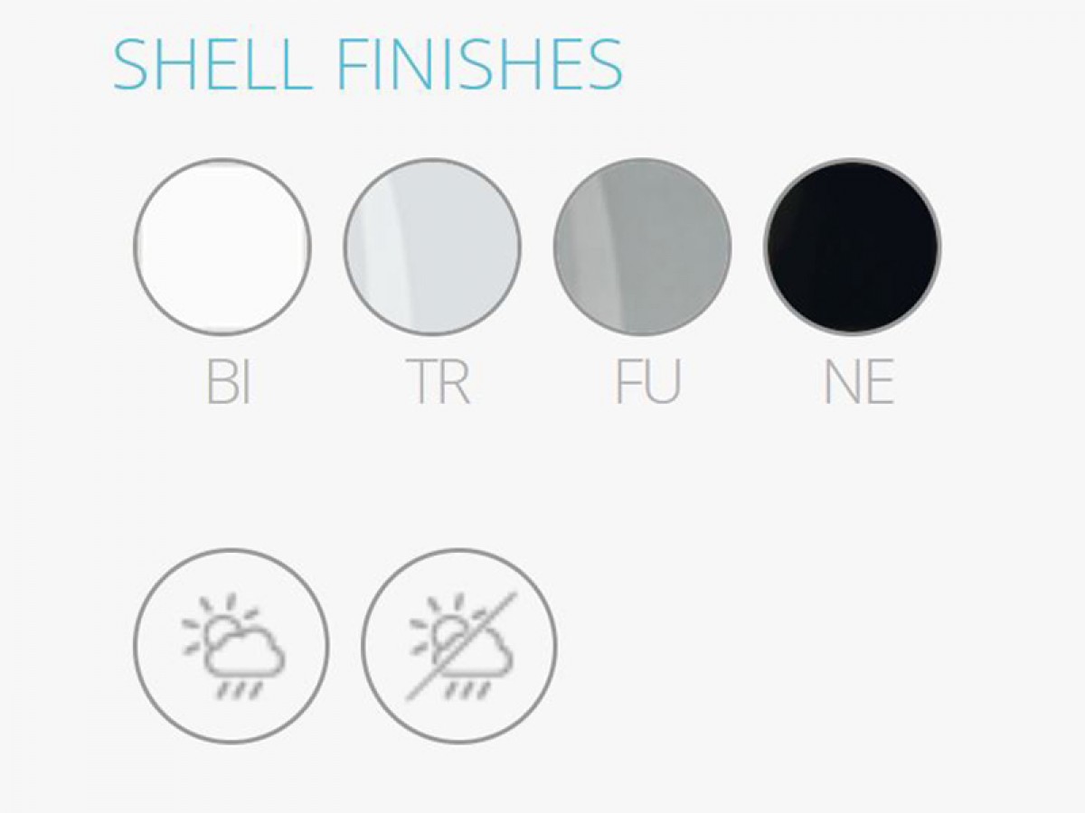 - In polycarbonate, glossy finish. Available colours: white, black, fume and transparent.