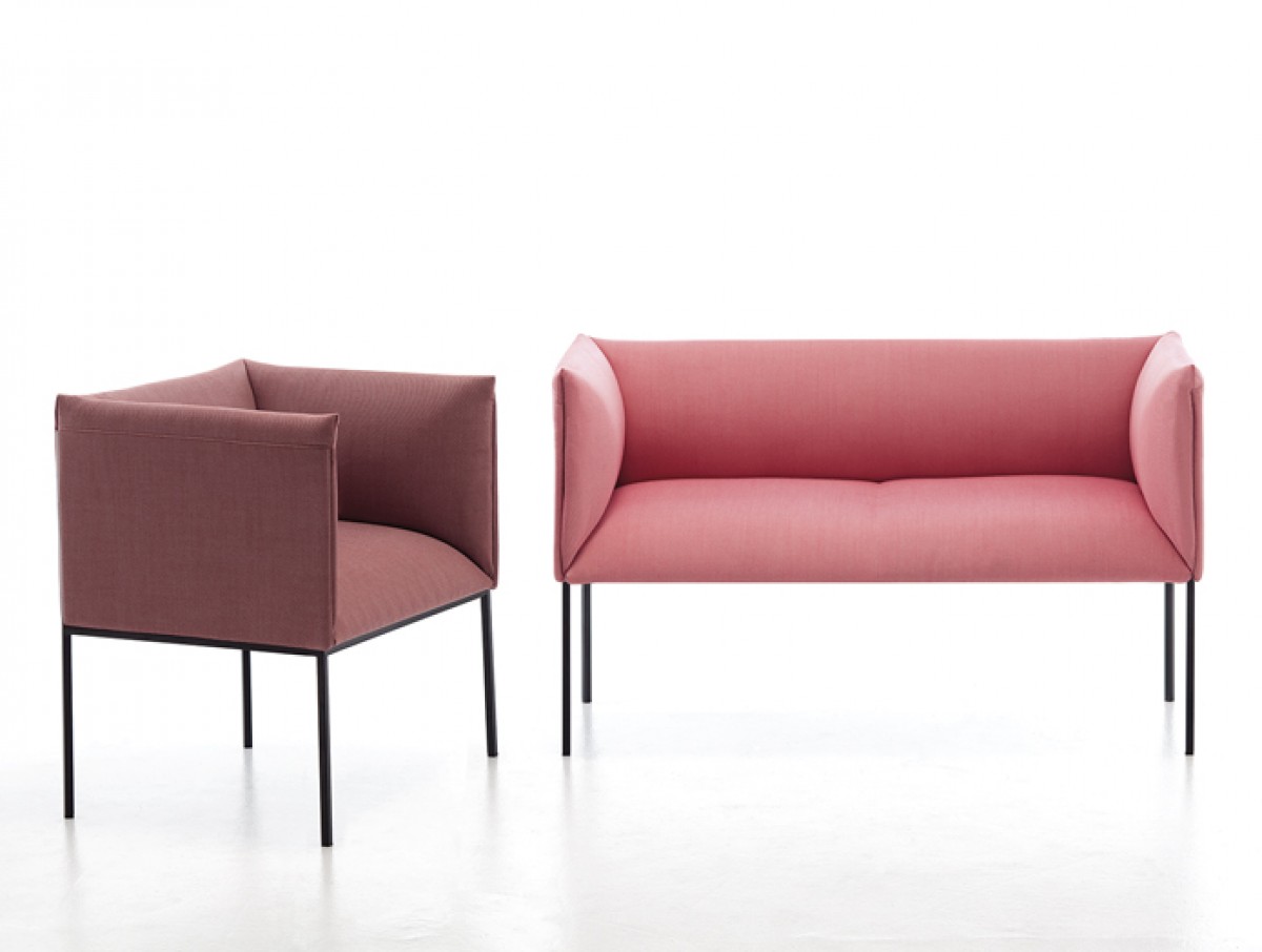 • Two-seats sofa, chromed or painted steel frame, padded seat and back.