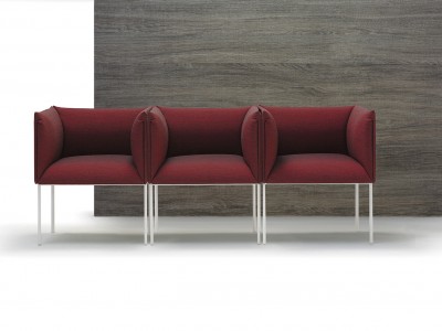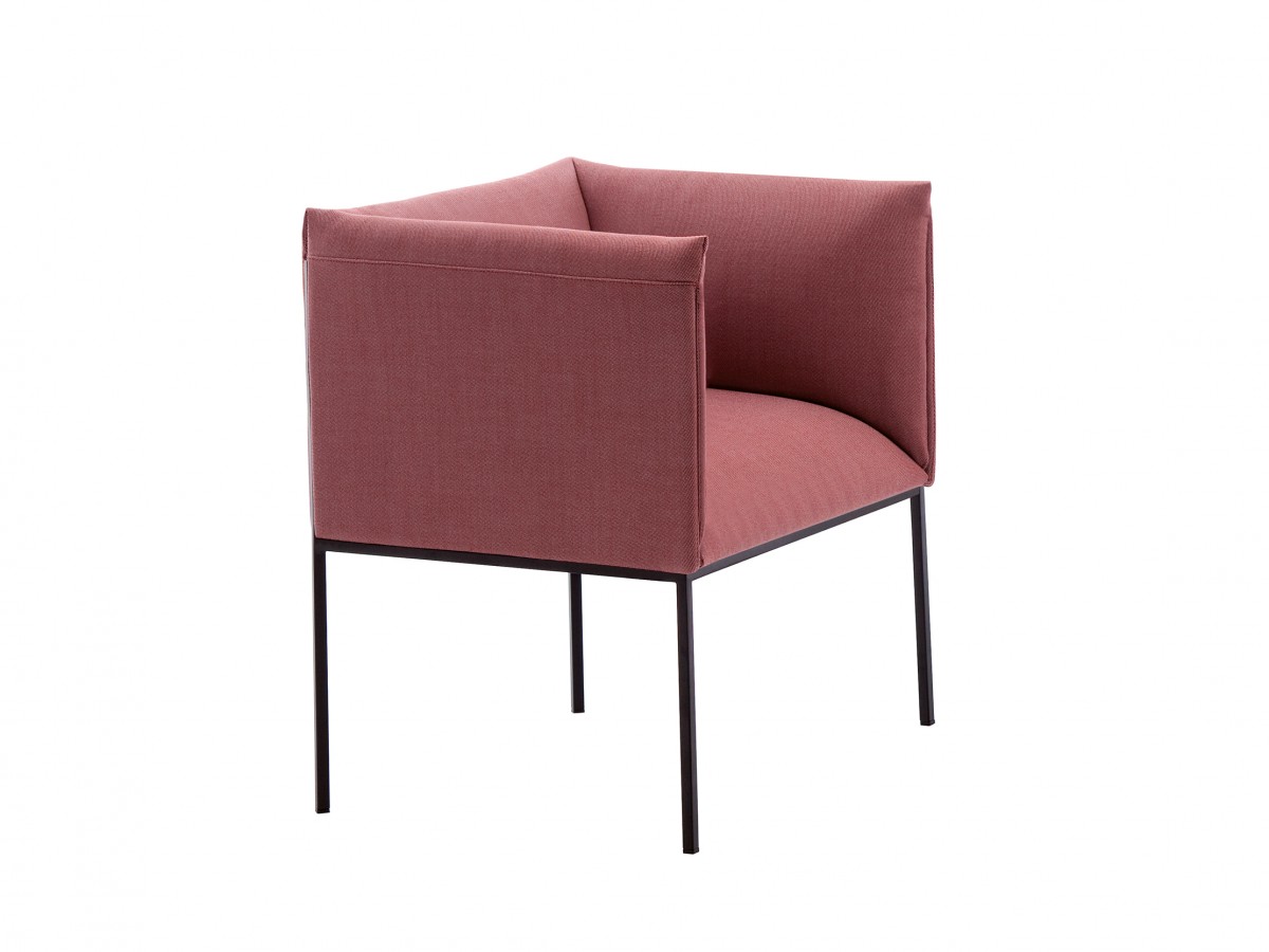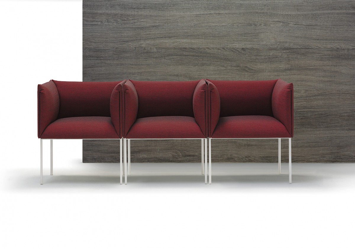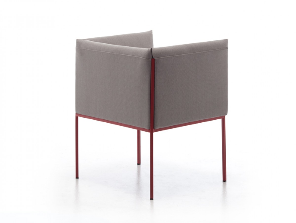• Armchair with chromed or painted steel frame, upholstered seat and back.