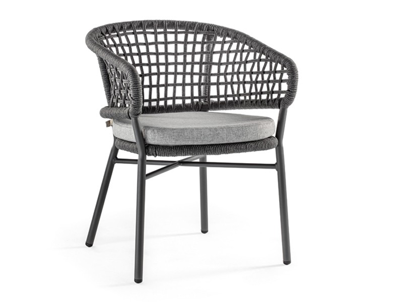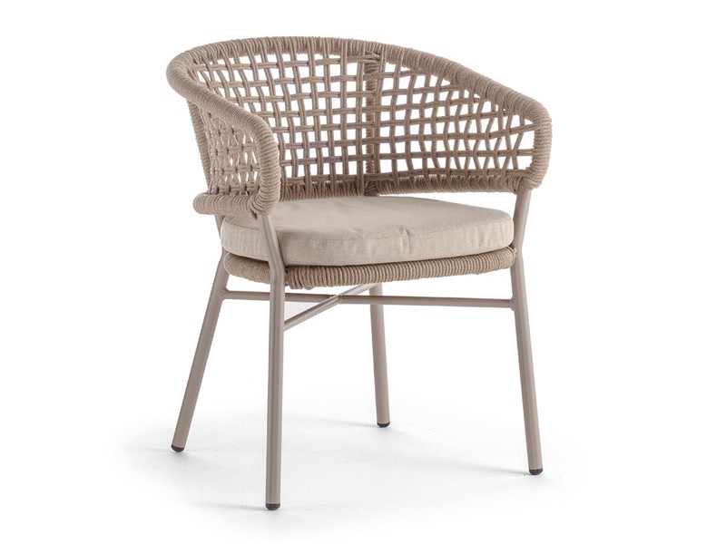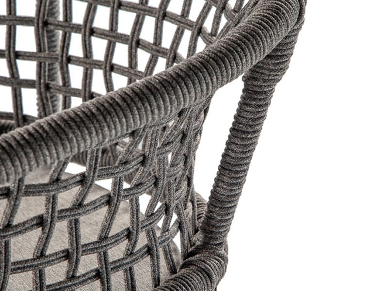 - It is covered with acrylic rope and features an upholstered cushion made of Olefin fabric.