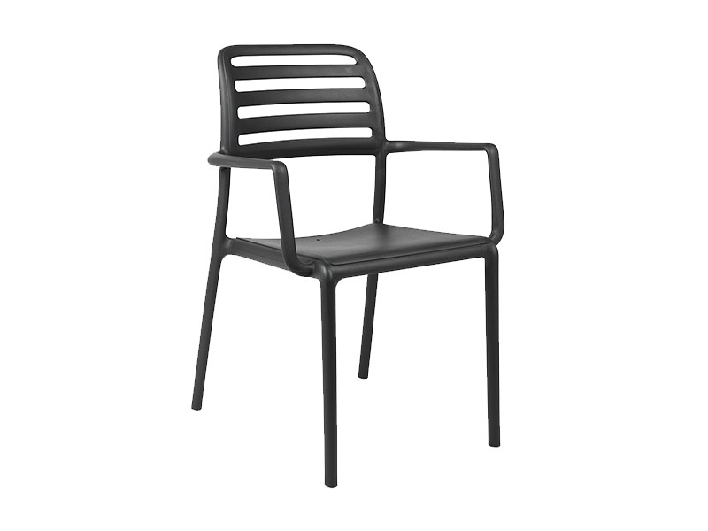 - Stackable chair made of uniformly colored fiberglass polypropylene resins with uv additives