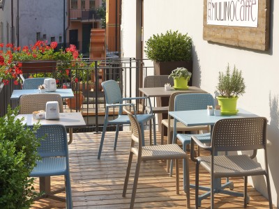 • Stackable armchair in fiber-glass filled polypropylene with non-slip feet.