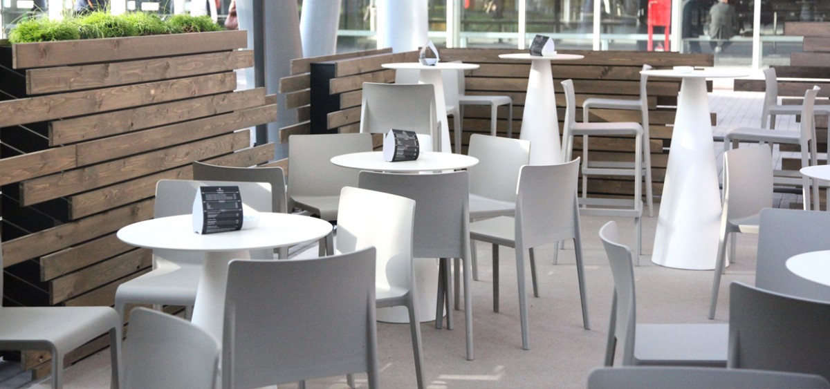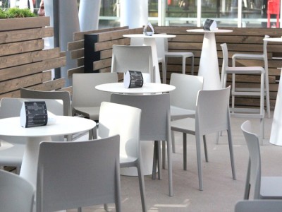 • Injected polypropylene table base which can be combined with  solid laminate, glass or powder coated steel tops.