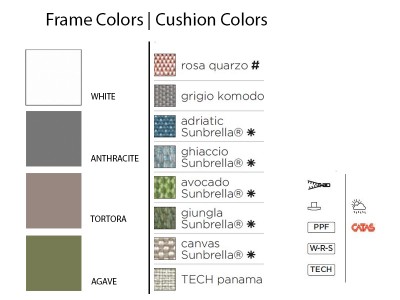 - Available in numerous colour variations, frame color: White, Anthracite, Tortora, Agave