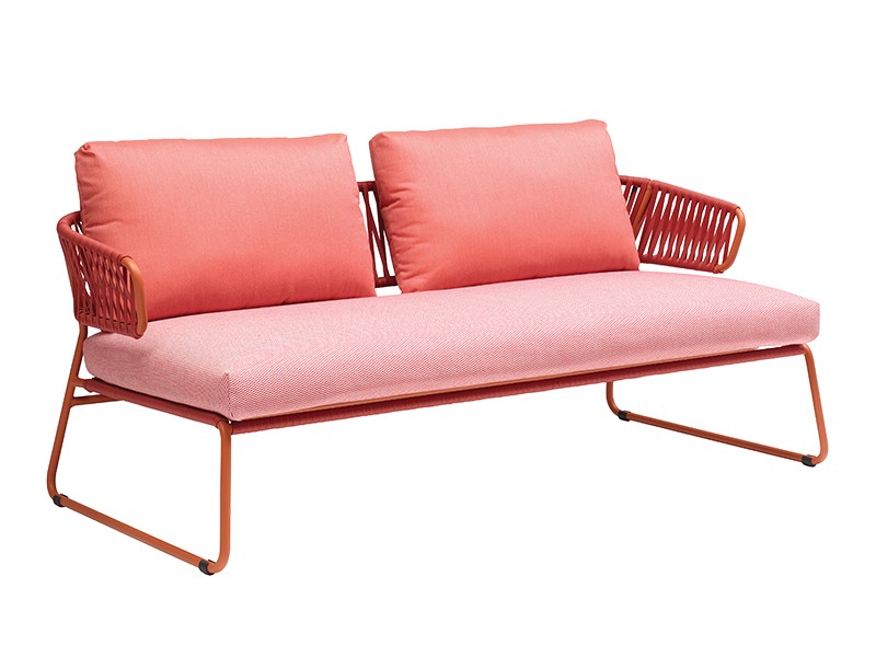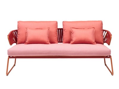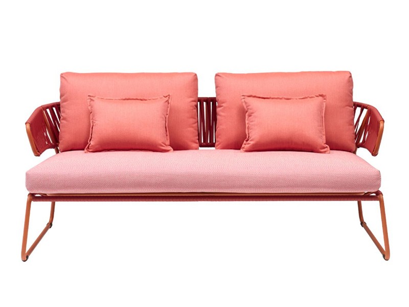 - Lounge sofa with braided back in extruded PVC reinforced with nylon wires and removable cushions covered with Sunbrella® fabric.