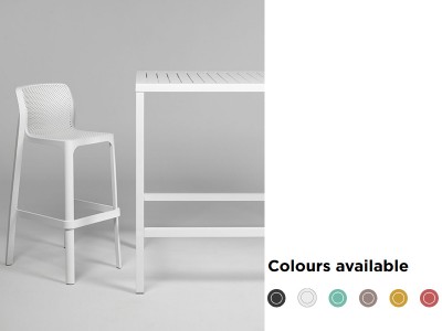 - Outdoor monobloc stool, Net BK is made of recyclable resin