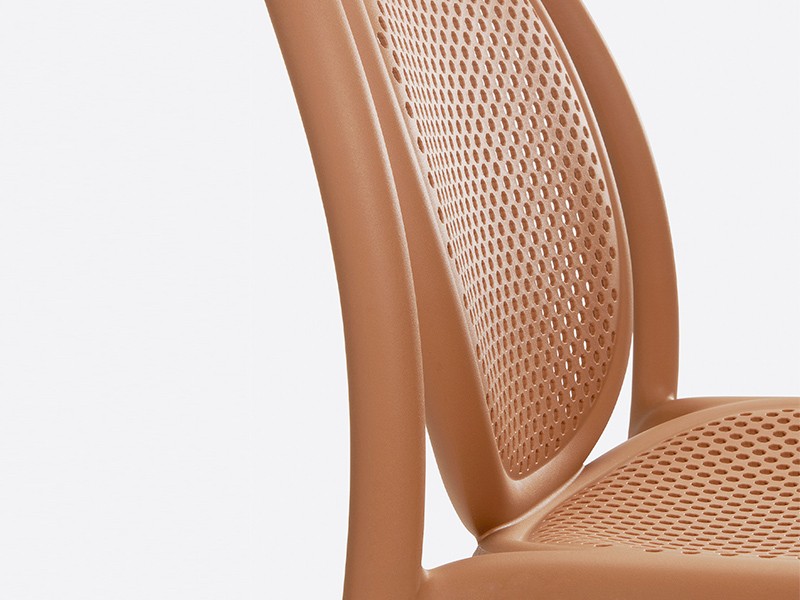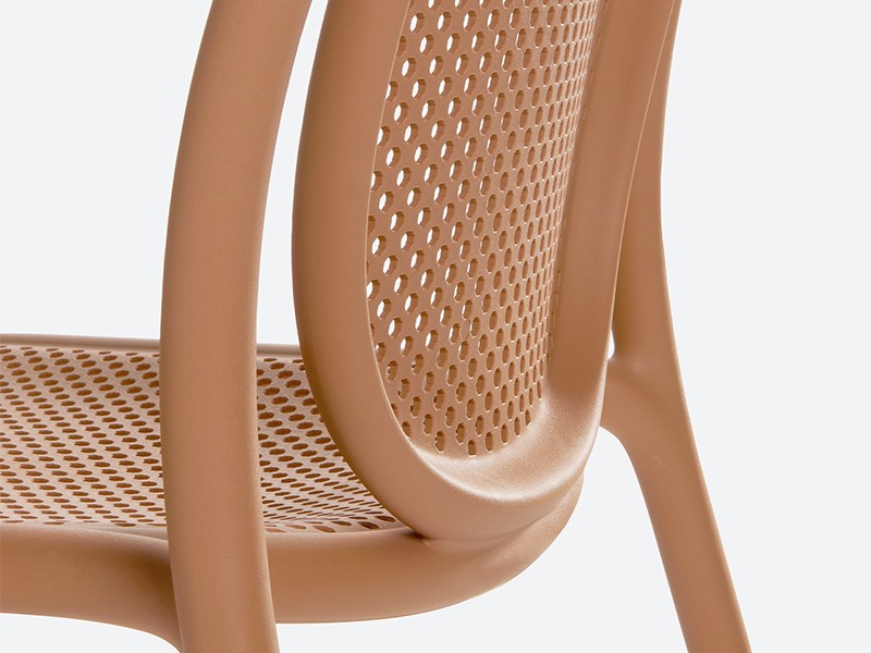 •  Made from a monoblock of injection-moulded polypropylene, the transpiring seat and backrest contribute to the chair’s airy, lightweight appearance, as well as to its embracing comfort.
