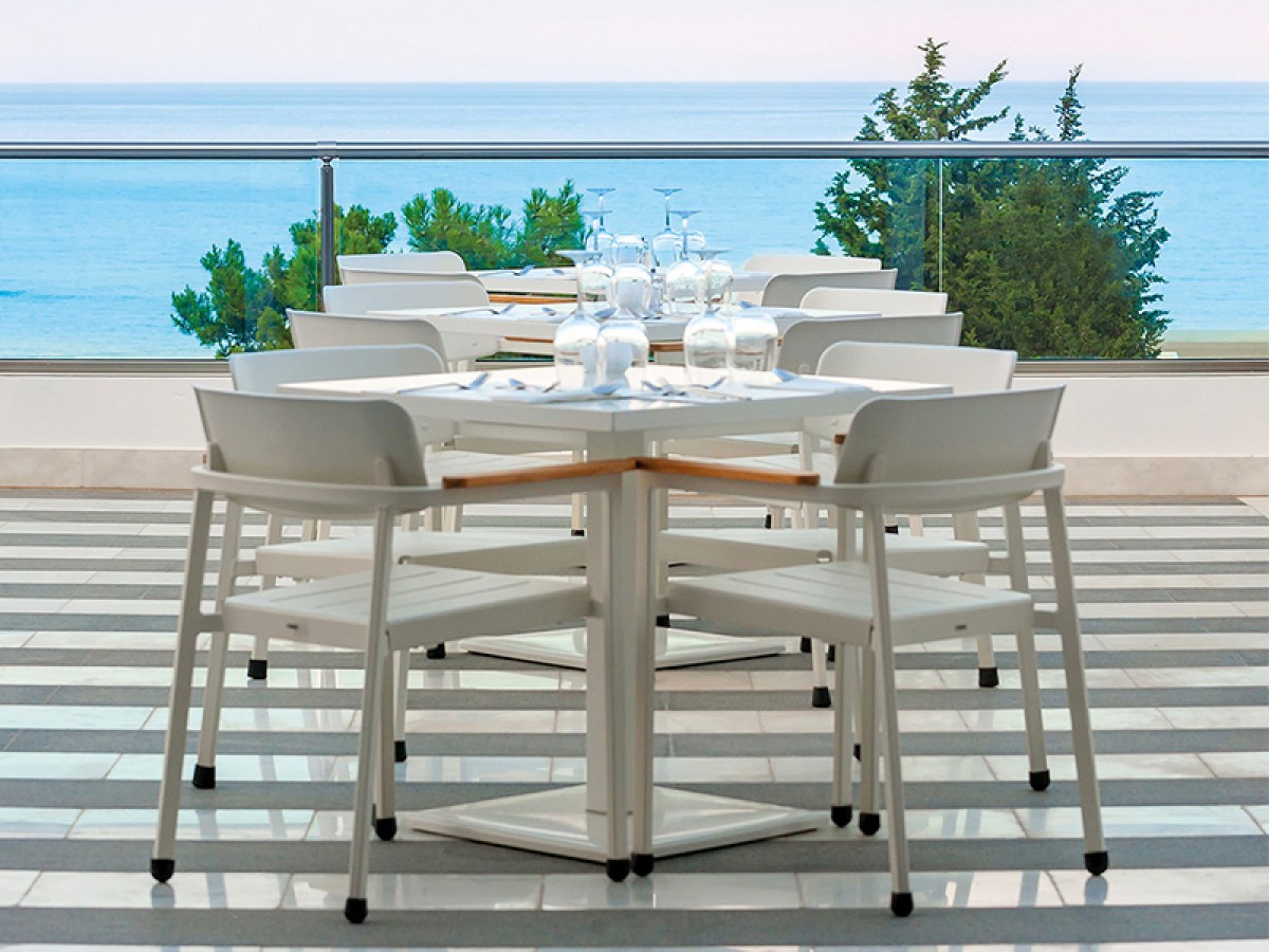 - Frame colours: matt white, black, indian brown, taupe, armrests in teak color