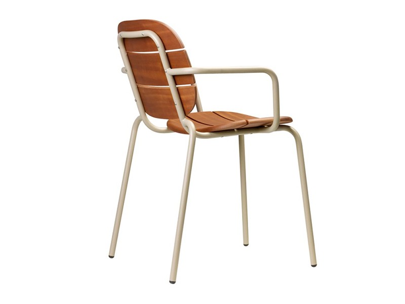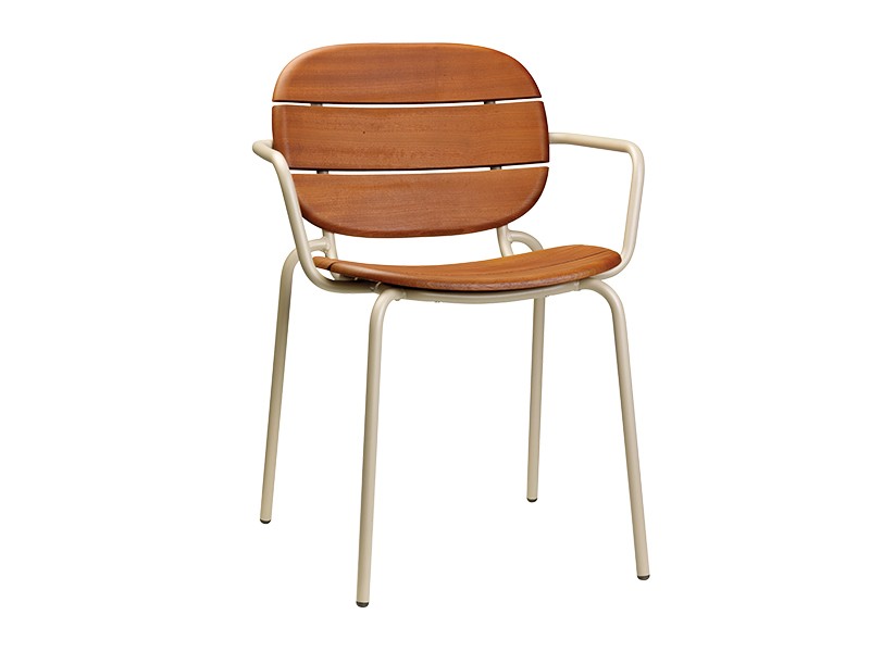 - Seat and backrest in solid Sapelli mahogany wood slats treated for outdoor use.