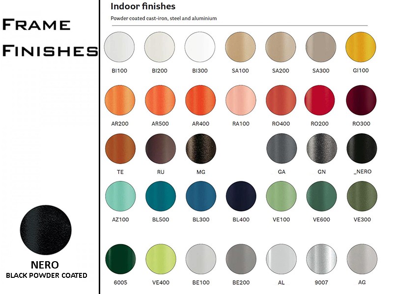 - Sand-blasted cast-iron base Ø55cm and steel tube column Ø7,6 cm.