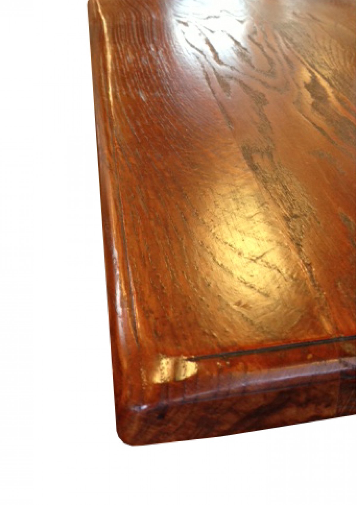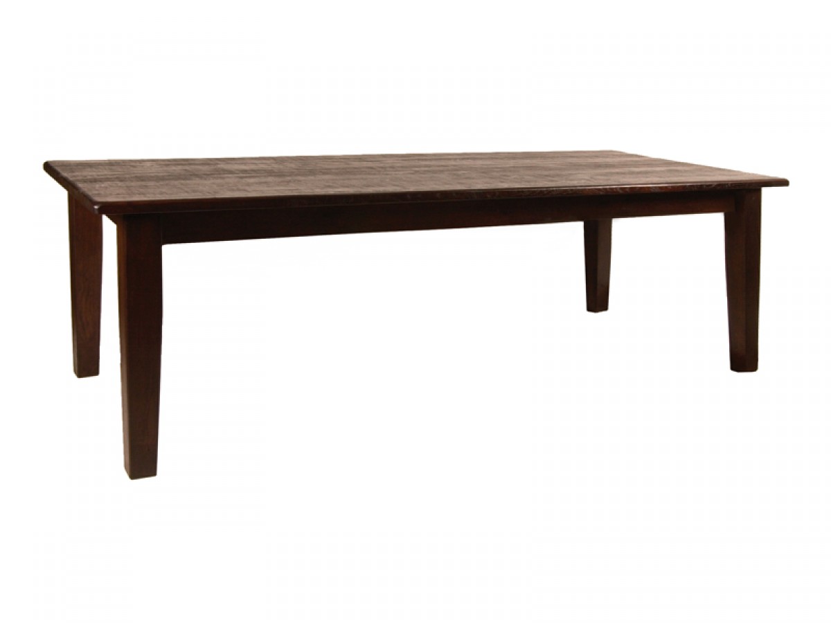 - Oak wood restaurant table with an antique finish top, 10x10cm tapered legs with decorative grooves.