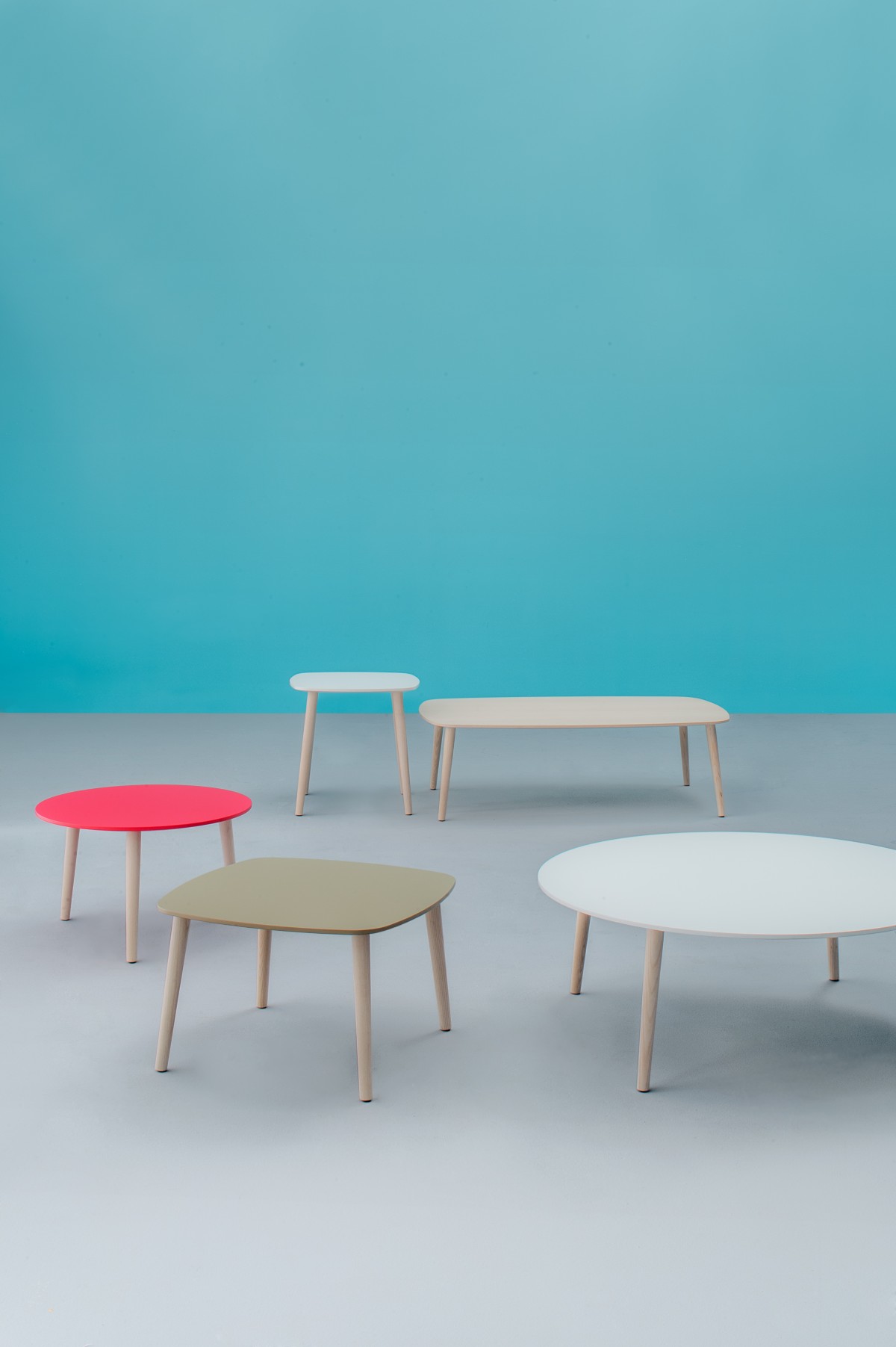 - Coffee tables with lacquered mdf top, tapered legs in ash wood.
