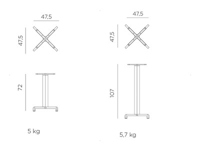 - Fiore base, to be used with tops maximum: ø 80 - 80x80 cm.