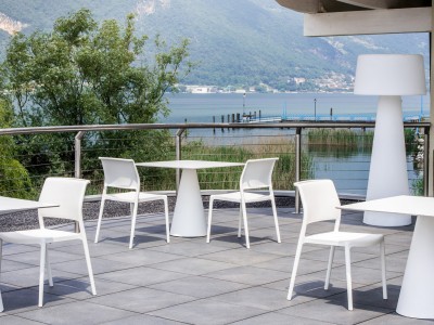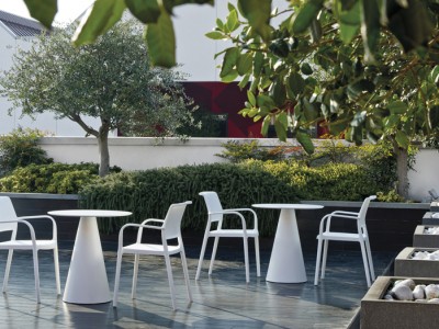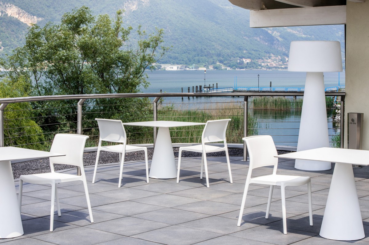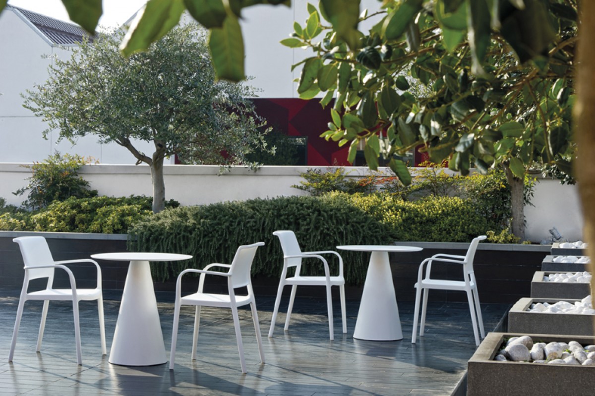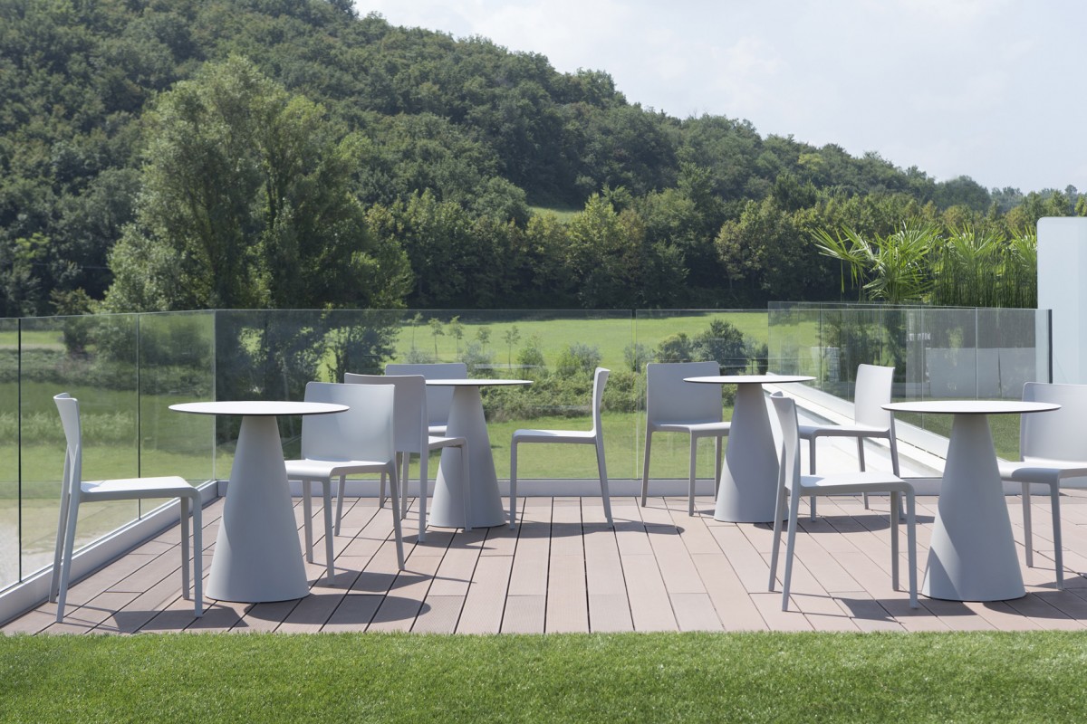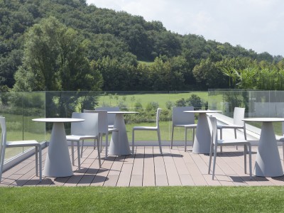 - Injected polypropylene table base which can be combined with solid laminate, glass or powder coated steel tops.