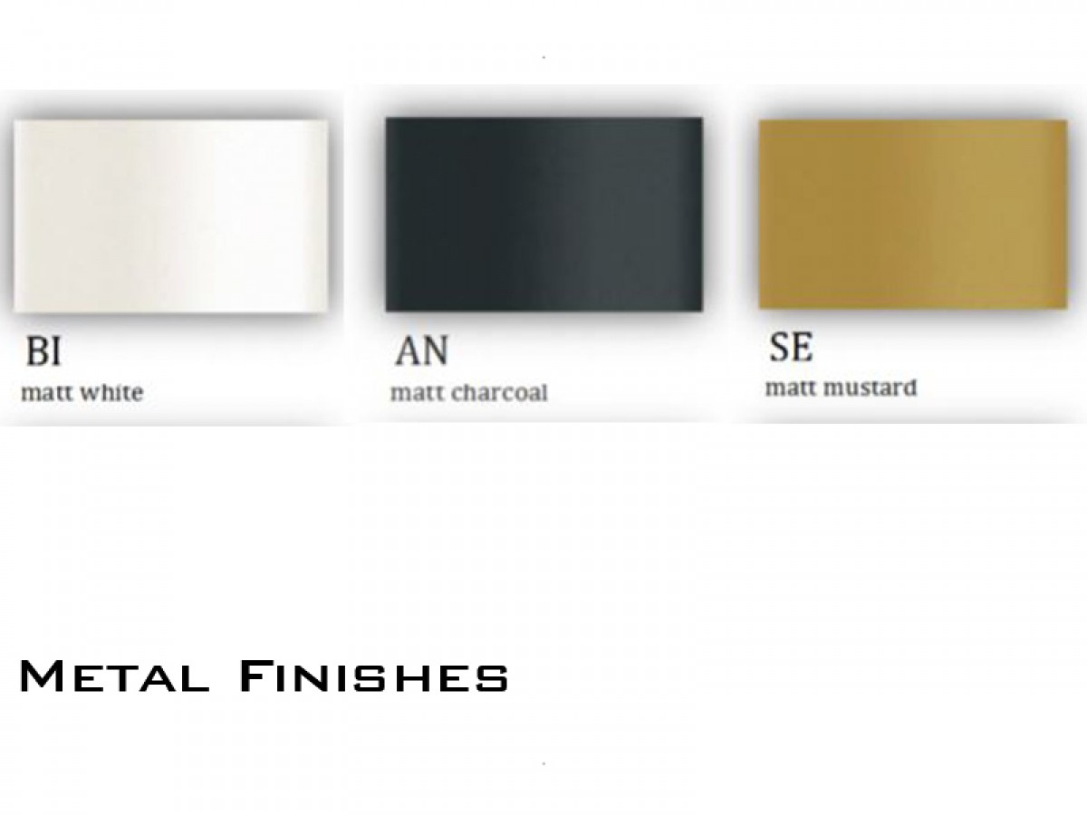 - Entirely made out of metal, vailable frame colors: mat charcoal, white and mat mustard