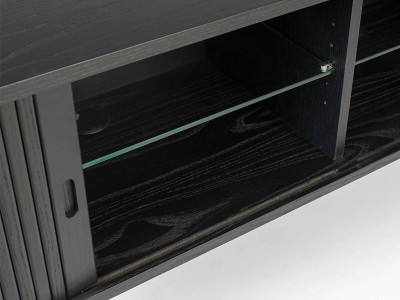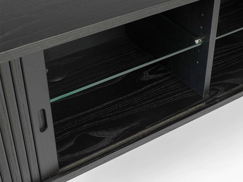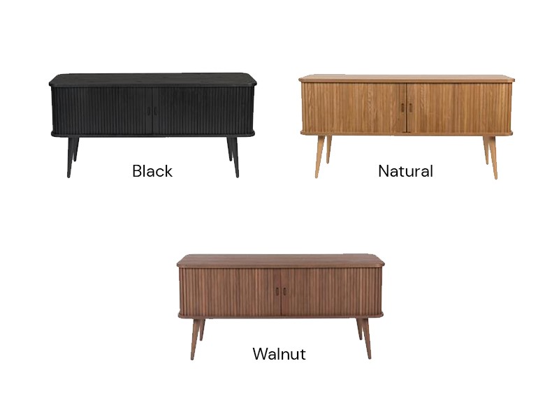 • Wooden media sideboard with eye catching sliding tambour doors.