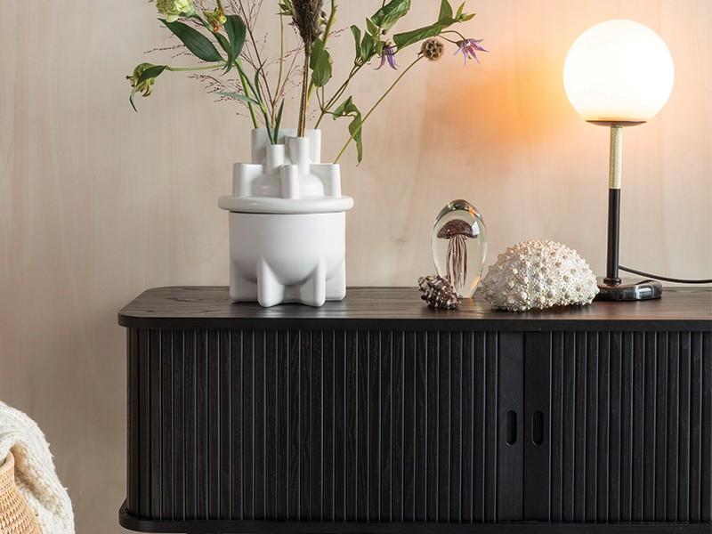 • Top and bottom MDF with veneer, inside panels MDF with foil, legs and tambour solid wood.