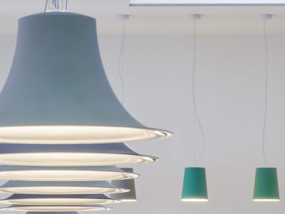 - Suspension lamp with polycarbonate diffuser soft-touch powder coating.